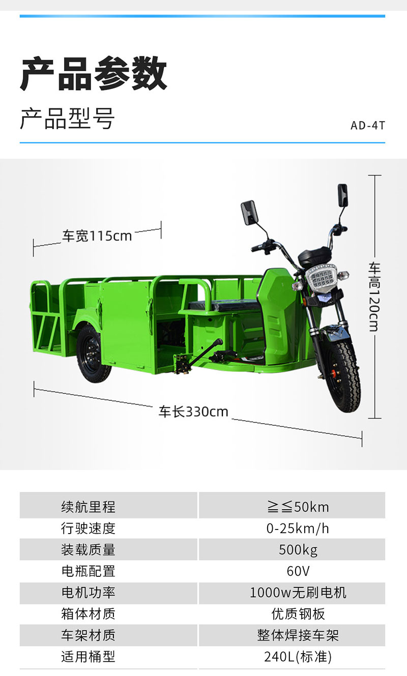 艾德森AD-4T电动四桶垃圾清运车环卫保洁车