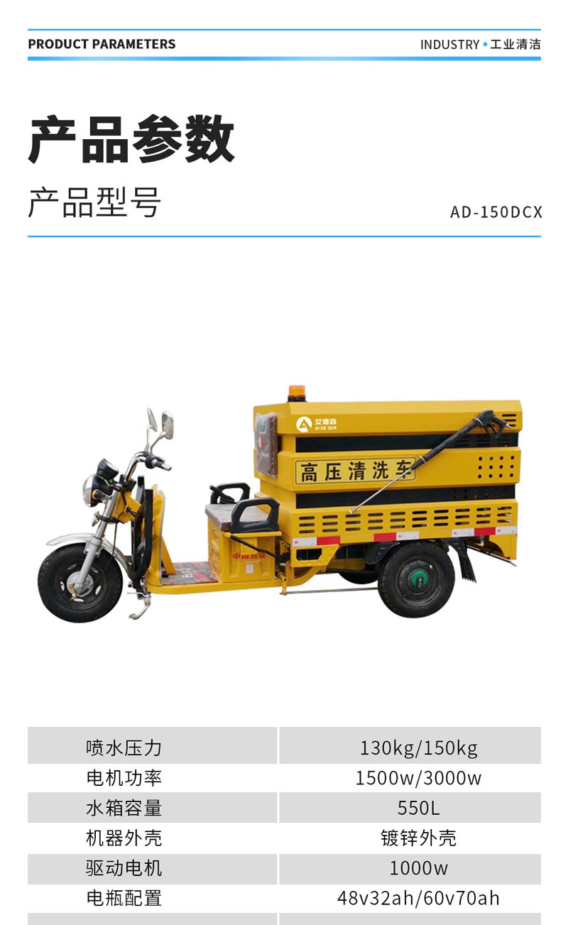 艾德森AD-150DCX电动三轮高压冲洗车