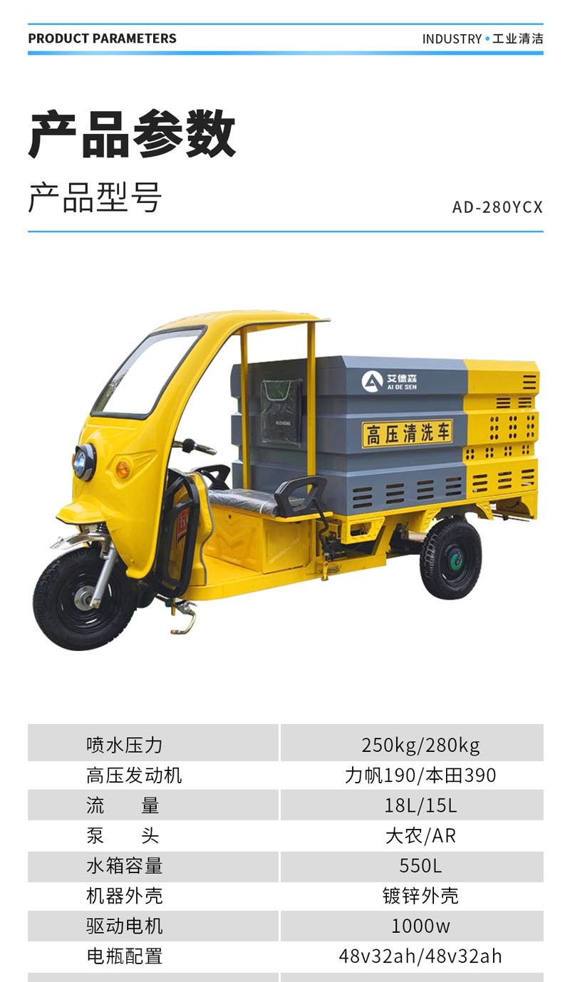 艾德森AD-280YCX三轮燃油高压冲洗车