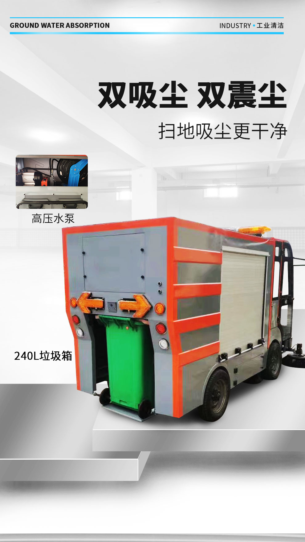 2.扫地、吸尘、洒水一体,扫地干净,不怕扬尘,配置高压水枪高压和高压喷雾,可清洗边角狭小区域。
